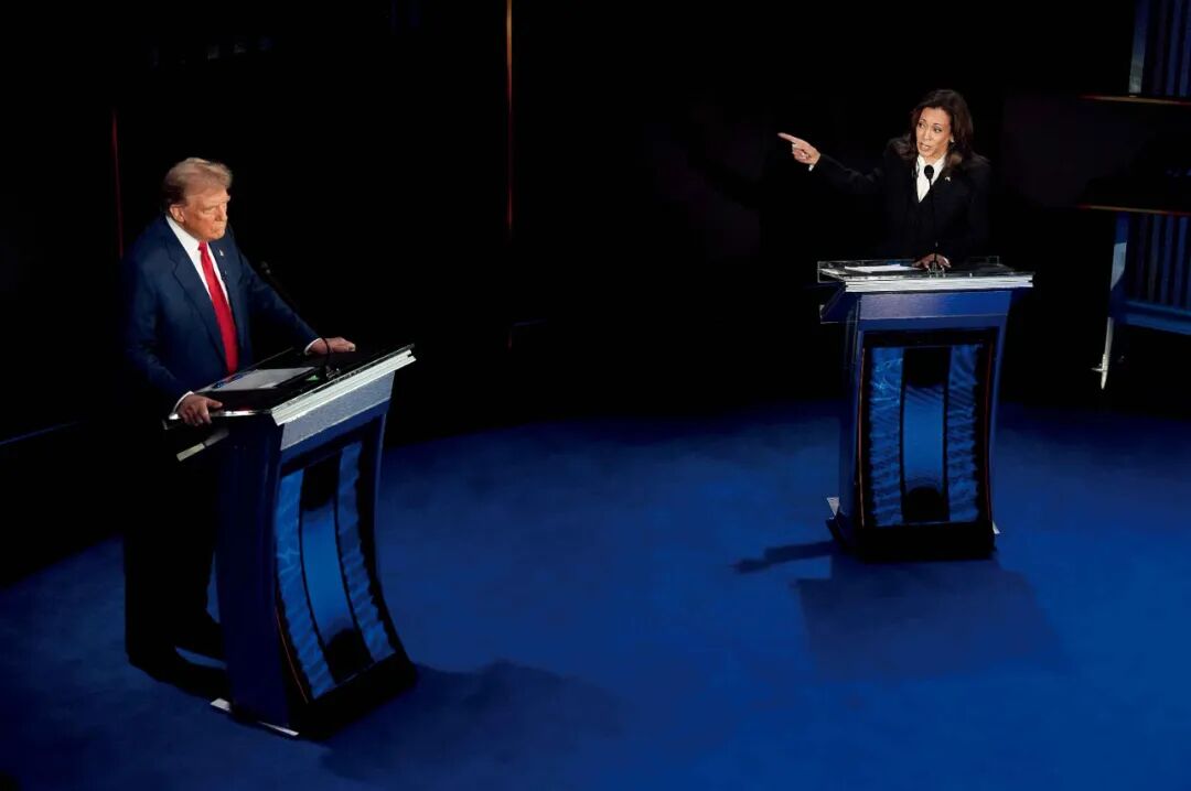 9月10日,特朗普与哈里斯之间的首场电视辩论。图/视觉中国