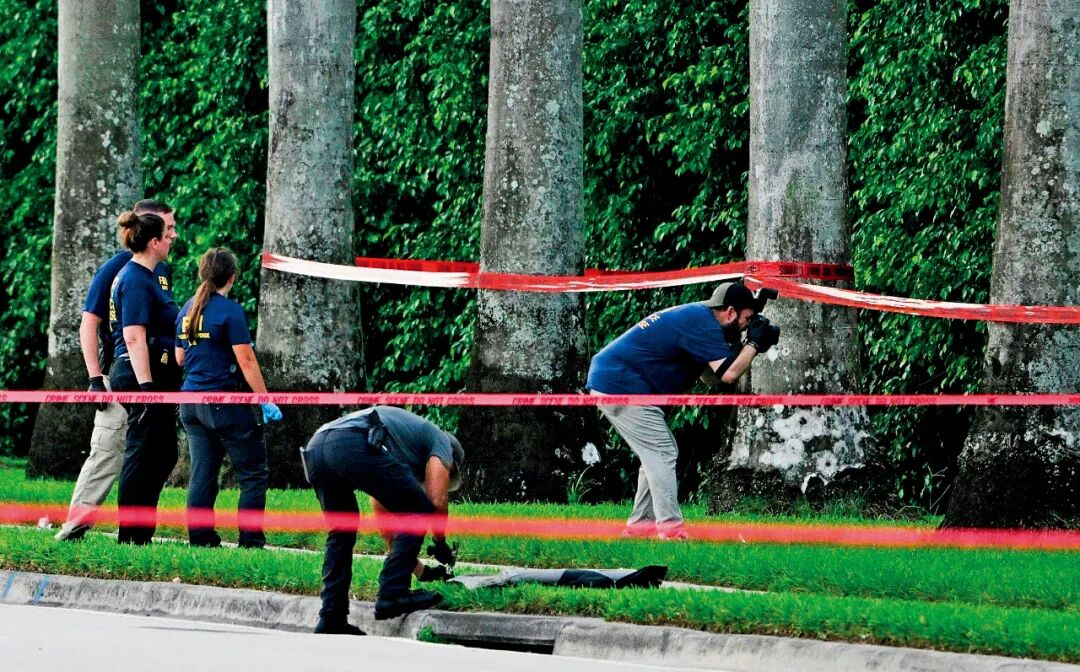 9月15日,美国佛罗里达州西棕榈滩,特朗普国际高尔夫俱乐部附近发生枪击事件。美国联邦调查局工作人员在现场调查。图/视觉中国