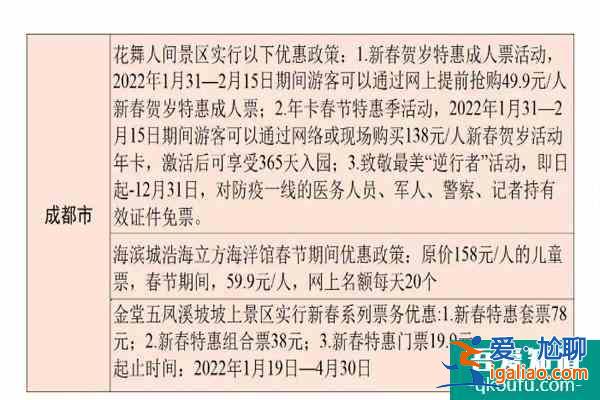 春节假期已经过半,就在最近,四川21个景区出台了优惠政策,实行门票免费、半价优惠政策。那么,四川21个城市2022年春节期间景区有哪些优惠政策?让我们一起来看看他们。...