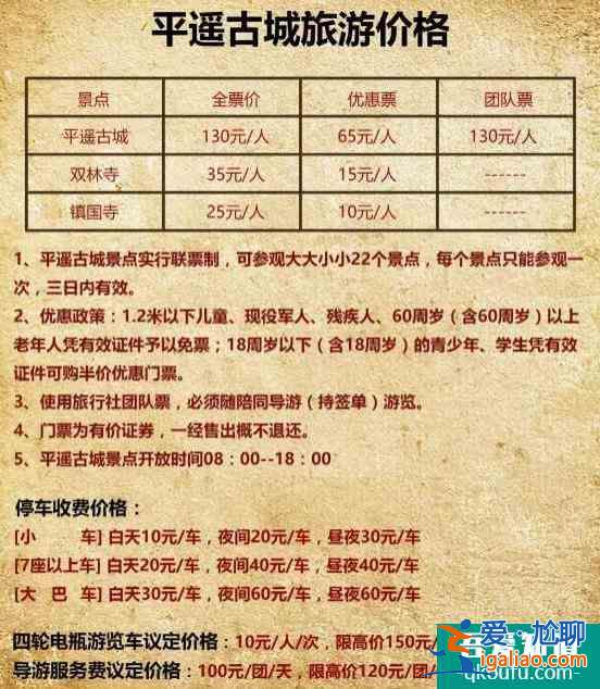 平遥古城位于晋中地区,是一座历史悠久、文化底蕴深厚的著名古镇。这里集中展示了西北古文化的魅力和金文化的神奇元素。在这里,跟大家分享一下平遥古城门票价格的最新消息。...